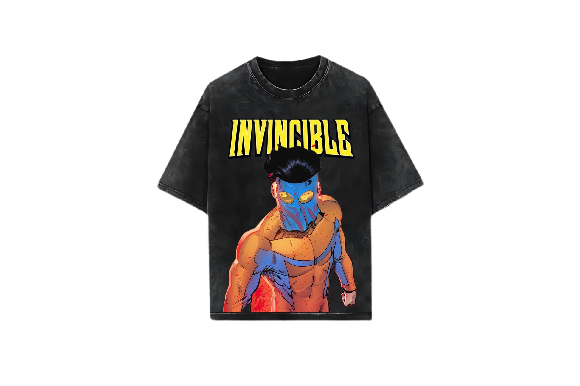 La resiliencia toma forma. La camiseta "Invincible Reborn" captura el momento más crudo de transformación del héroe, resaltando su fuerza interior tras la batalla. Con un diseño imponente en colores vivos sobre un fondo acid wash negro, esta pieza oversized no solo es moda: es una declaración de poder y evolución.